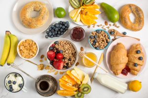 Petit-déjeuner équilibré : privilégiez des protéines (yaourt, œuf), des fibres (fruits, céréales complètes) et limitez les sucres rapides.